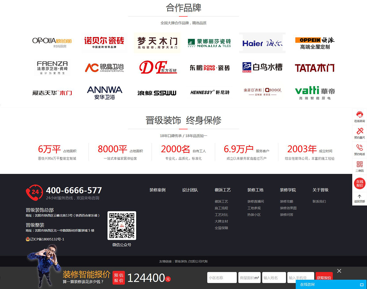 遼寧晉級興邦科技股份有限公司,是晉級裝飾旗下公司,一家集設(shè)計、施工、裝修、裝飾、定制、配送于一體的服務(wù)型企業(yè),沈陽市裝飾協(xié)會副會長單位。注冊成立于2003年9月,位于沈陽市鐵西區(qū)云峰北街13號(鐵西百合家樂福),占地面積8000平方米,晉級裝飾是目前沈陽前三的裝修公司。分布3大樣板間、工藝展示間、千人會議廳、高檔精品、設(shè)計銷售、軟裝飾品、兒童休閑、洽談餐飲、家居體驗、主材套餐、燈具家電、智能家居、人機(jī)互動等11個區(qū),全球知名品牌入駐,國內(nèi)行業(yè)領(lǐng)先。商城采用全新商業(yè)模式,無租金無進(jìn)場費(fèi),商家多賺錢客戶多省錢。線上線下互動,交易方便快捷。
