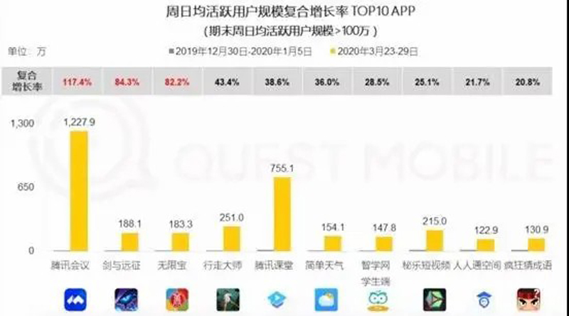 事實(shí)上,在產(chǎn)品增長(zhǎng)方面,騰訊或許是此次疫情中最大的贏家,這背后源于它并非某款單一產(chǎn)品的崛起,而是多款產(chǎn)品齊頭并進(jìn)——小程序、企業(yè)微信、騰訊會(huì)議、騰訊課堂、和平精英……